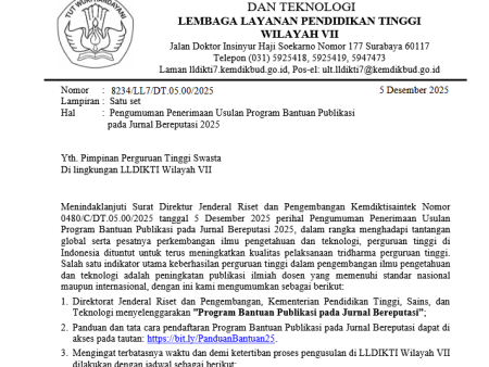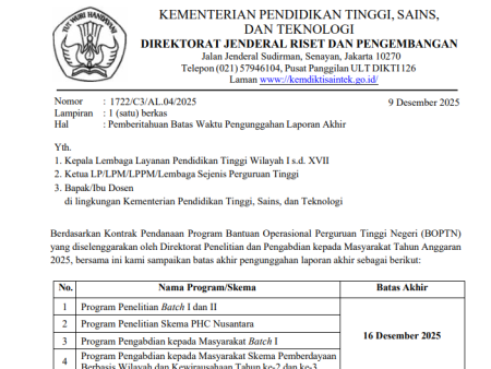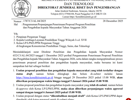 Menindaklanjuti Surat Direktur Jenderal Riset dan Pengembangan Kemdiktisaintek Nomor 0480/C/DT.05.00/2025 tanggal 5 Desember 2025 perihal…